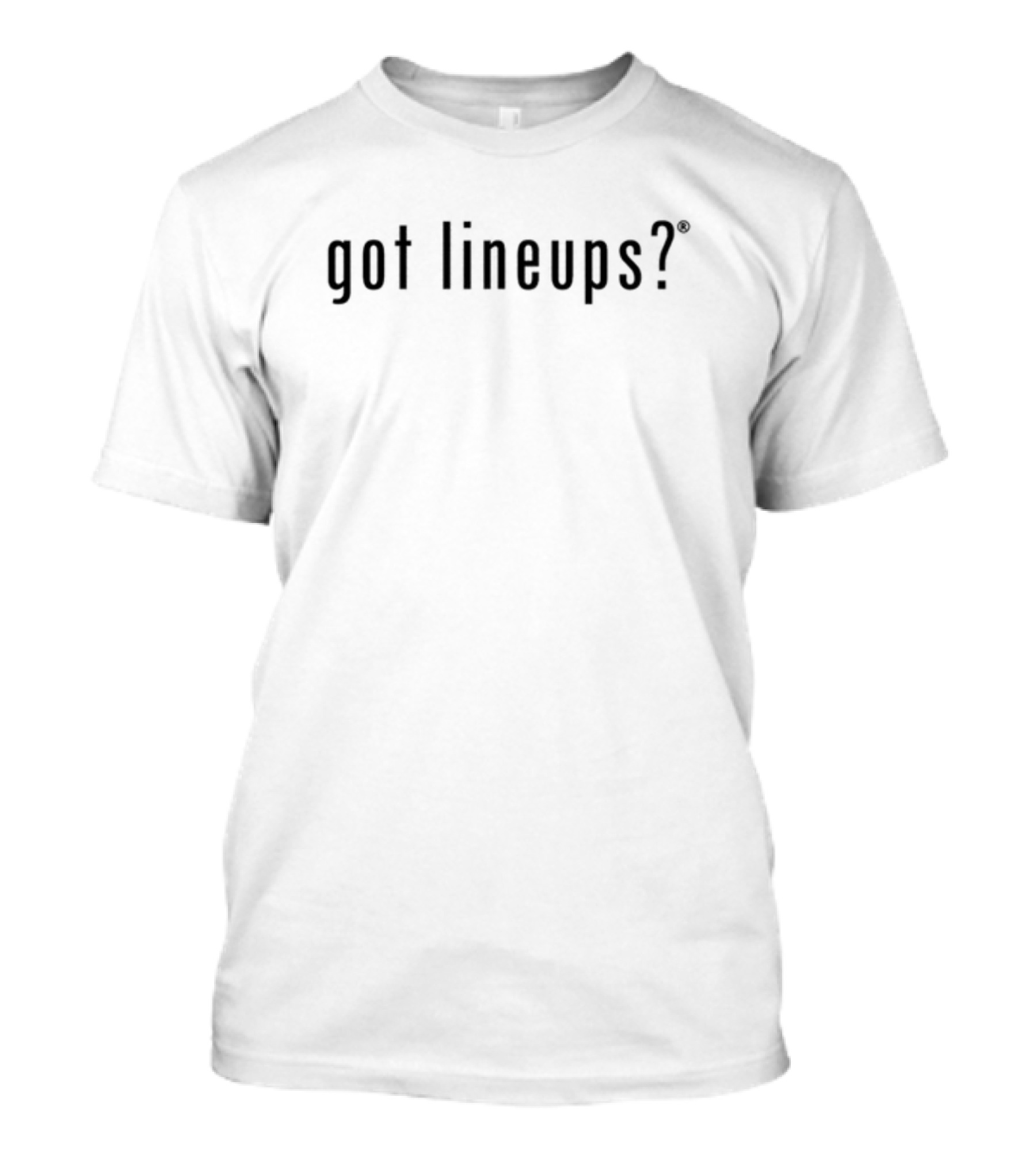 The Jerbifer Got Lineups? T-shirt is designed for everyday wear and a consistent fit. Fabric is pre-shrunk ring-spun cotton with durable stitching. See the size chart below for exact measurements.