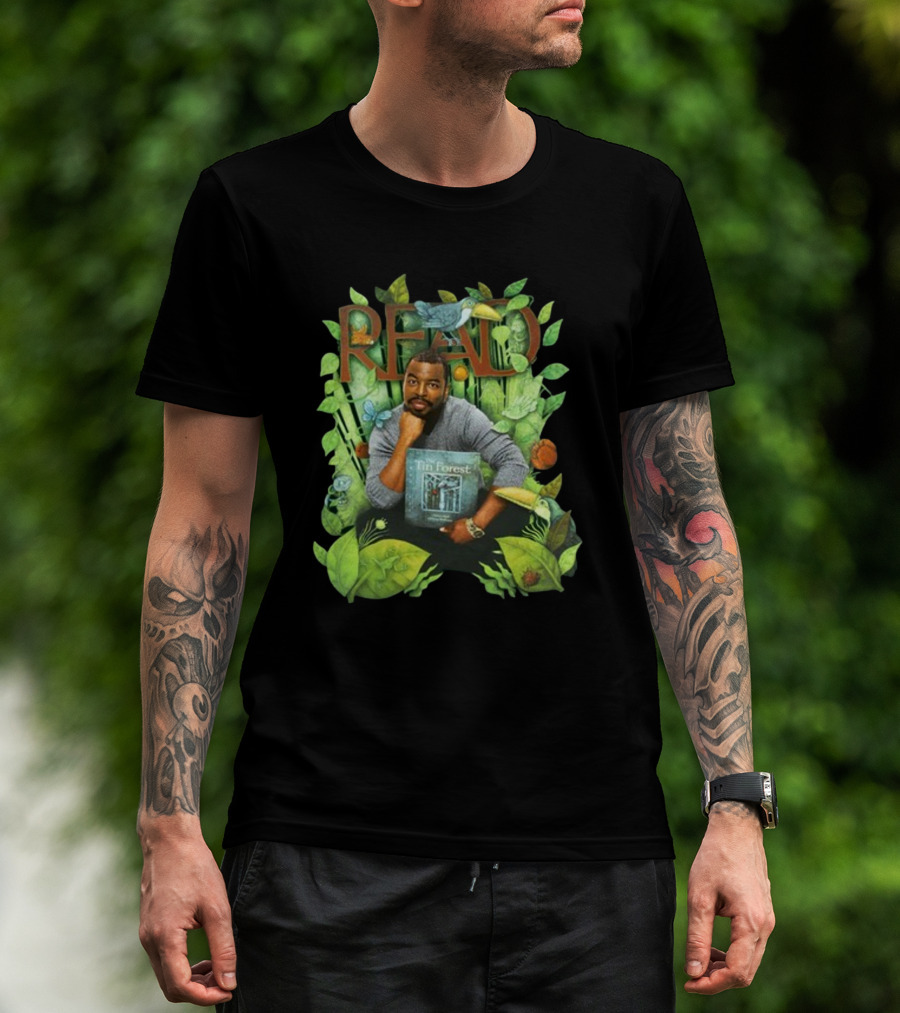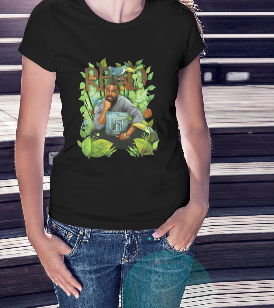 The LeVar Burton Read The Tin Forest Surrounded by Lush Greenery and Animals T-shirt is designed for everyday wear and a consistent fit. Fabric is pre-shrunk ring-spun cotton with durable stitching. See the size chart below for exact measurements.