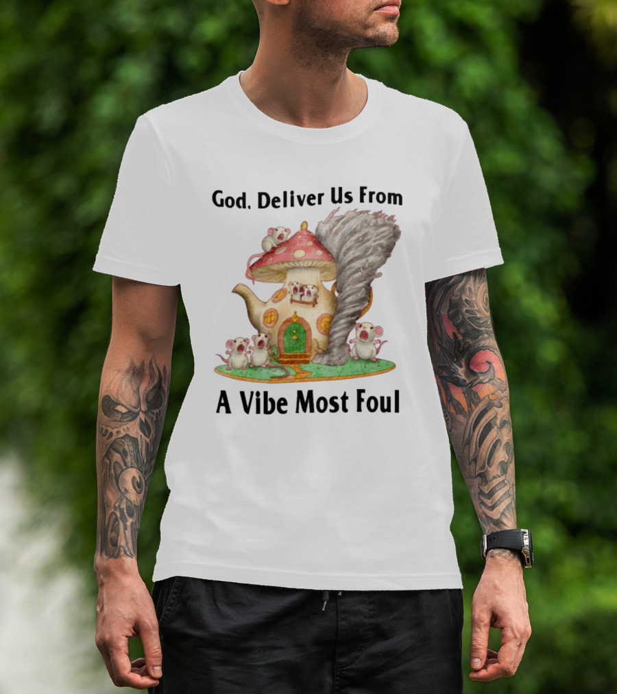 God Deliver Us From A Vibe Most Foul Mushroom House With Mice And Teapot Tornado T-Shirt