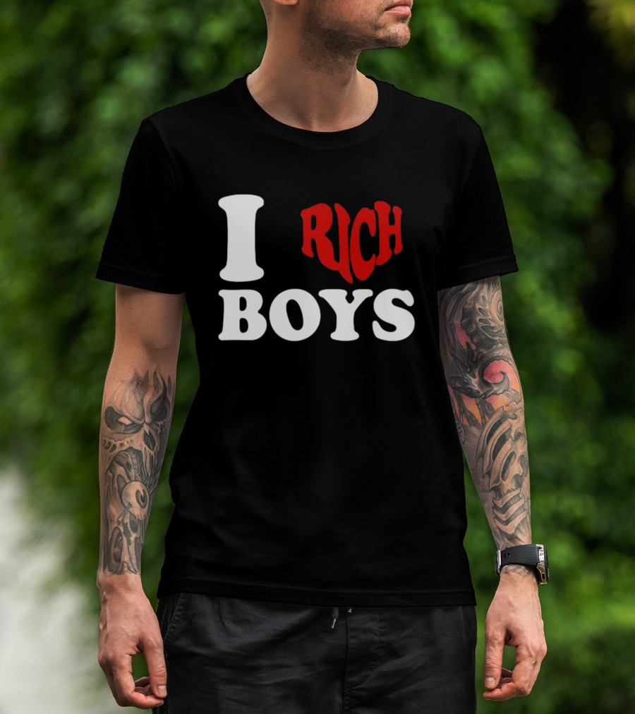 The I Love Rich Boys T-shirt is designed for everyday wear and a consistent fit. Fabric is pre-shrunk ring-spun cotton with durable stitching. See the size chart below for exact measurements.