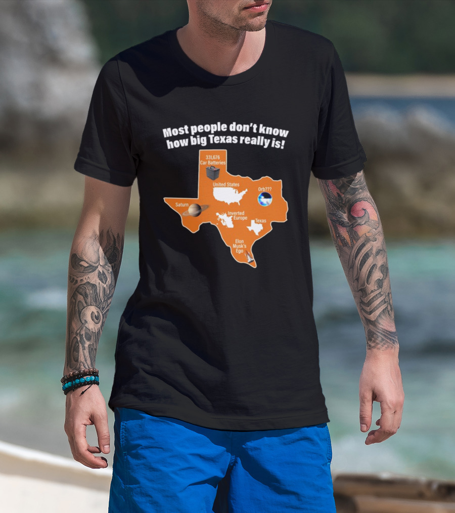 How much will this Funny Texas Map with Saturn Elon Musk's Ego and Car Batteries shirt shrink?