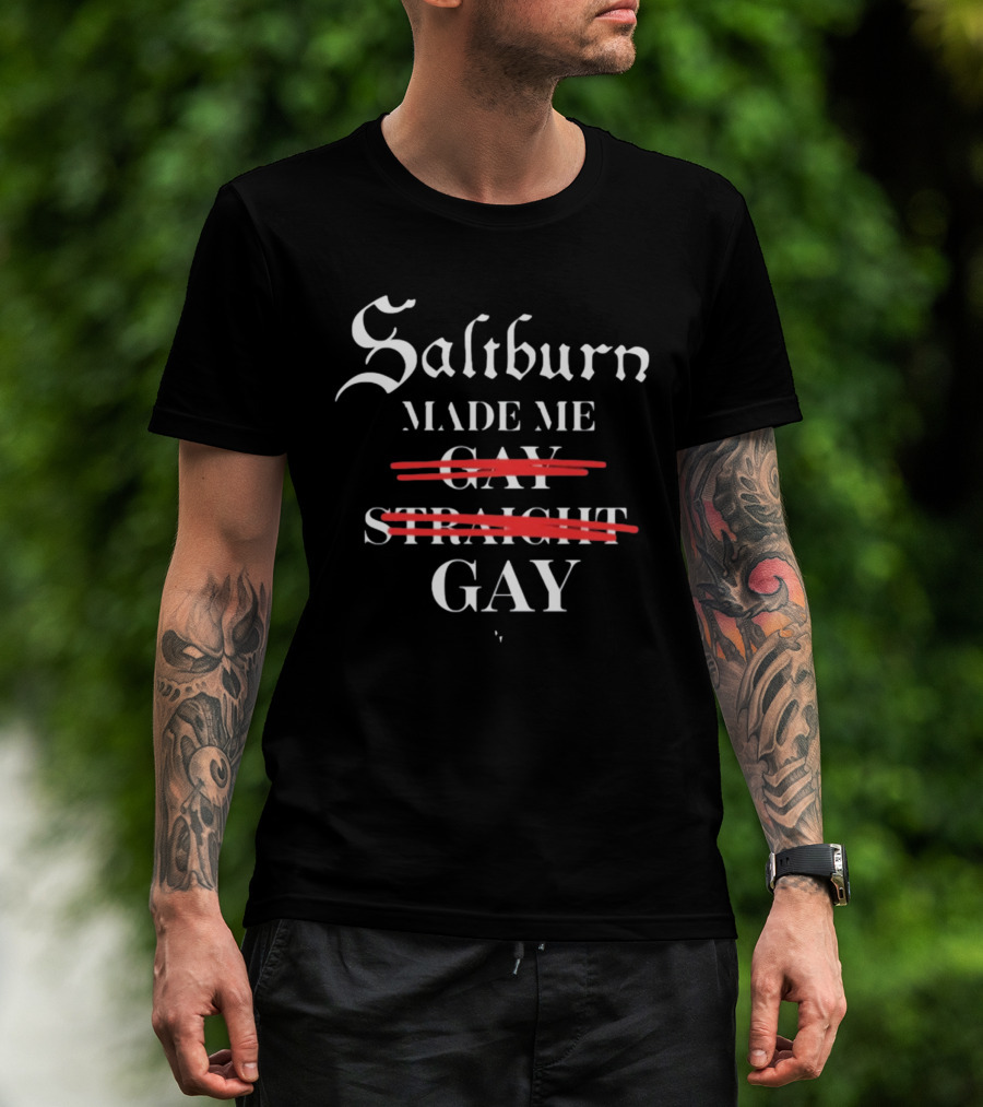 Saltburn Made Me Gay Straight Gay Text With Strike Through T-Shirt