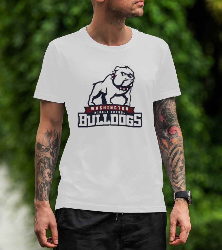 The Washington Middle School Bulldogs Mascot T-shirt is designed for everyday wear and a consistent fit. Fabric is pre-shrunk ring-spun cotton with durable stitching. See the size chart below for exact measurements.