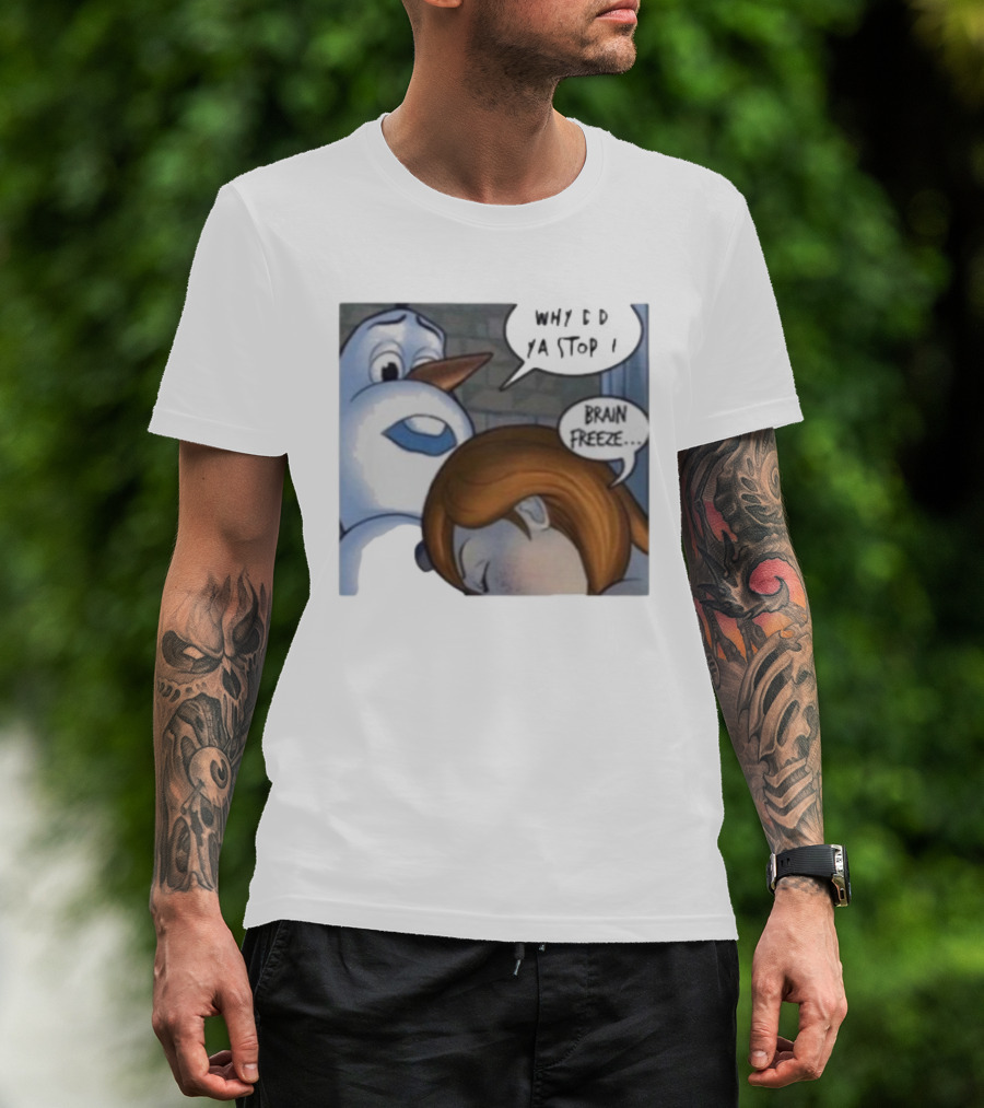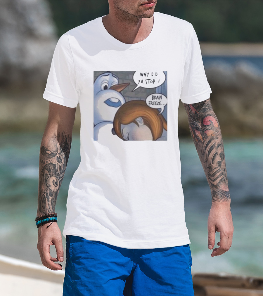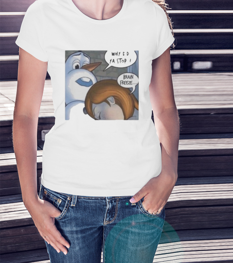 Why Did Ya Stop Brain Freeze Snowman And Girl Cartoon T-Shirt