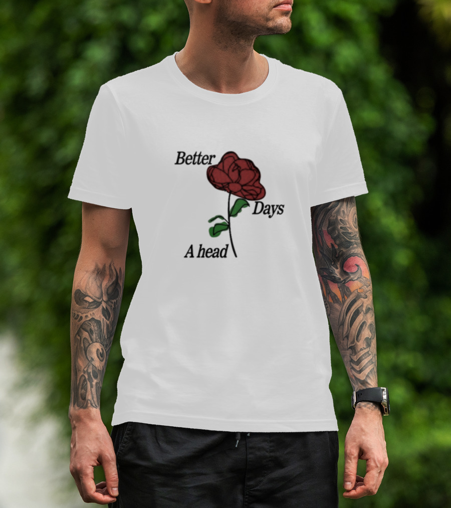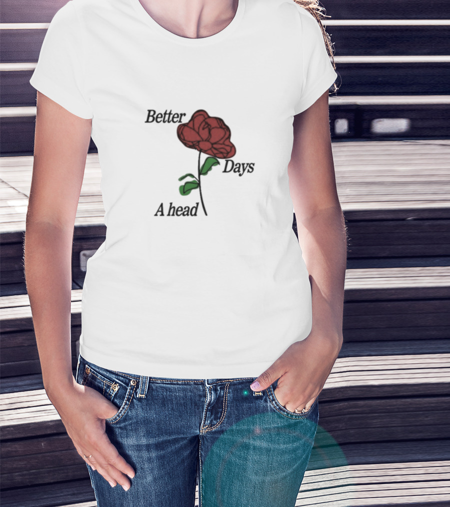 The Better Days Ahead Red Flower T-shirt is designed for everyday wear and a consistent fit. Fabric is pre-shrunk ring-spun cotton with durable stitching. See the size chart below for exact measurements.