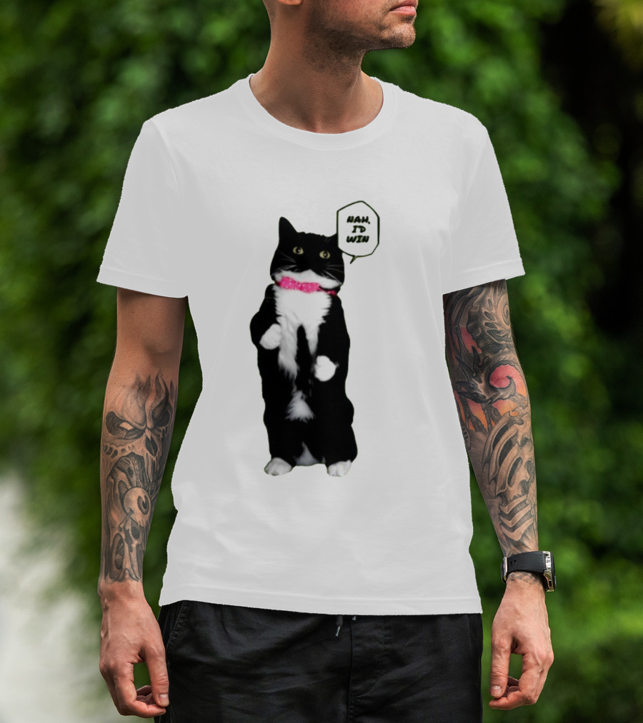 Nah I'd Win Cat Pink Collar Black And White Feline T-Shirt