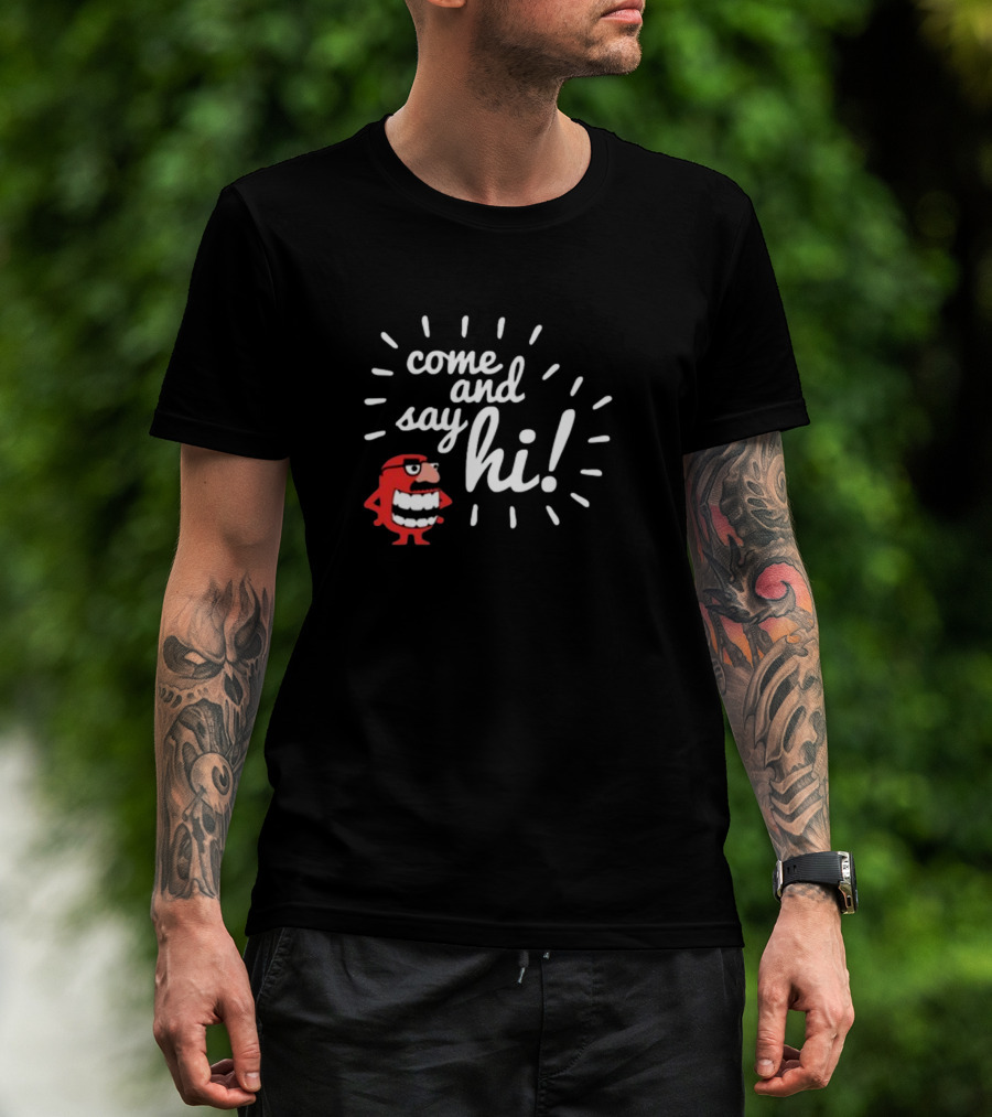 Ministryoftesting Come And Say Hi Red Cartoon Character T-Shirt