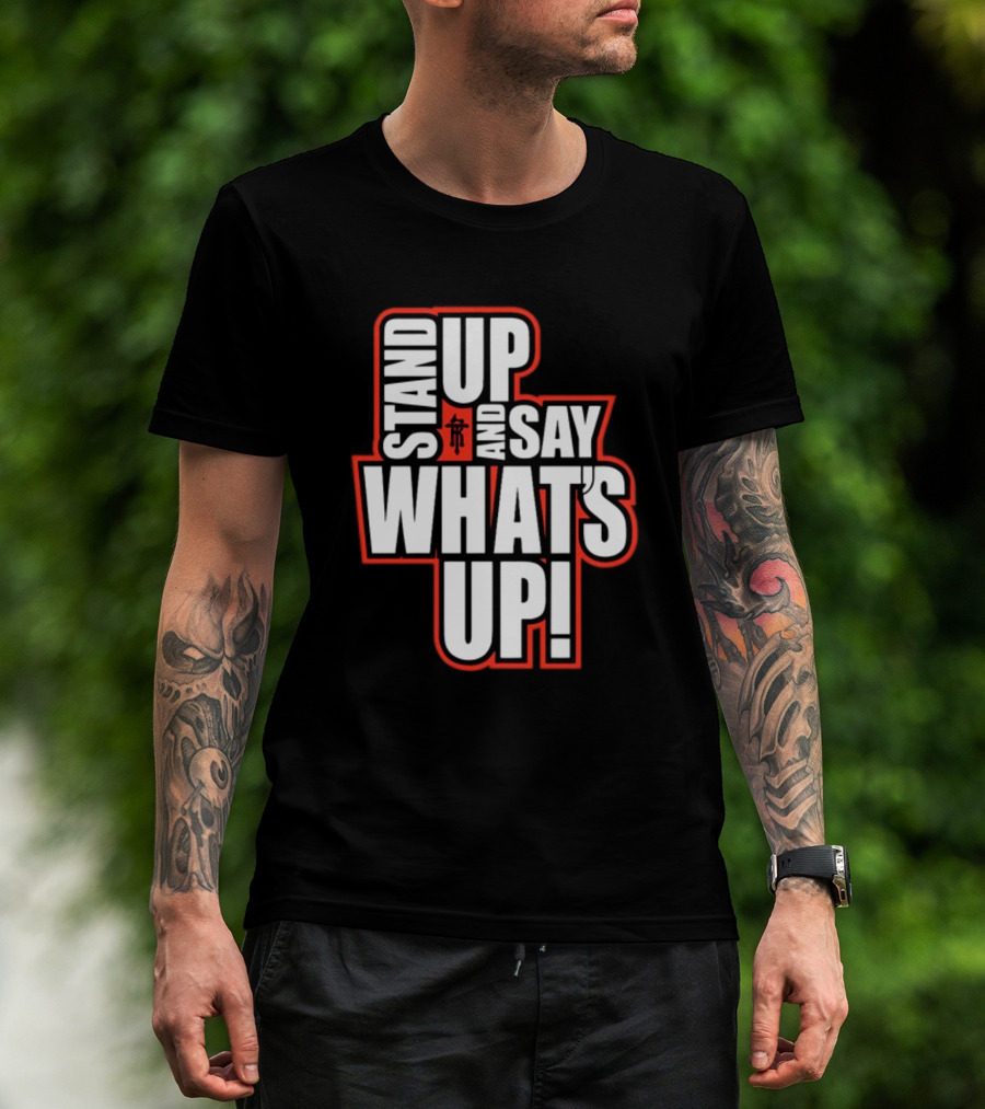 Stand Up And Say What's Up Bold Statement With Japanese Character T-Shirt