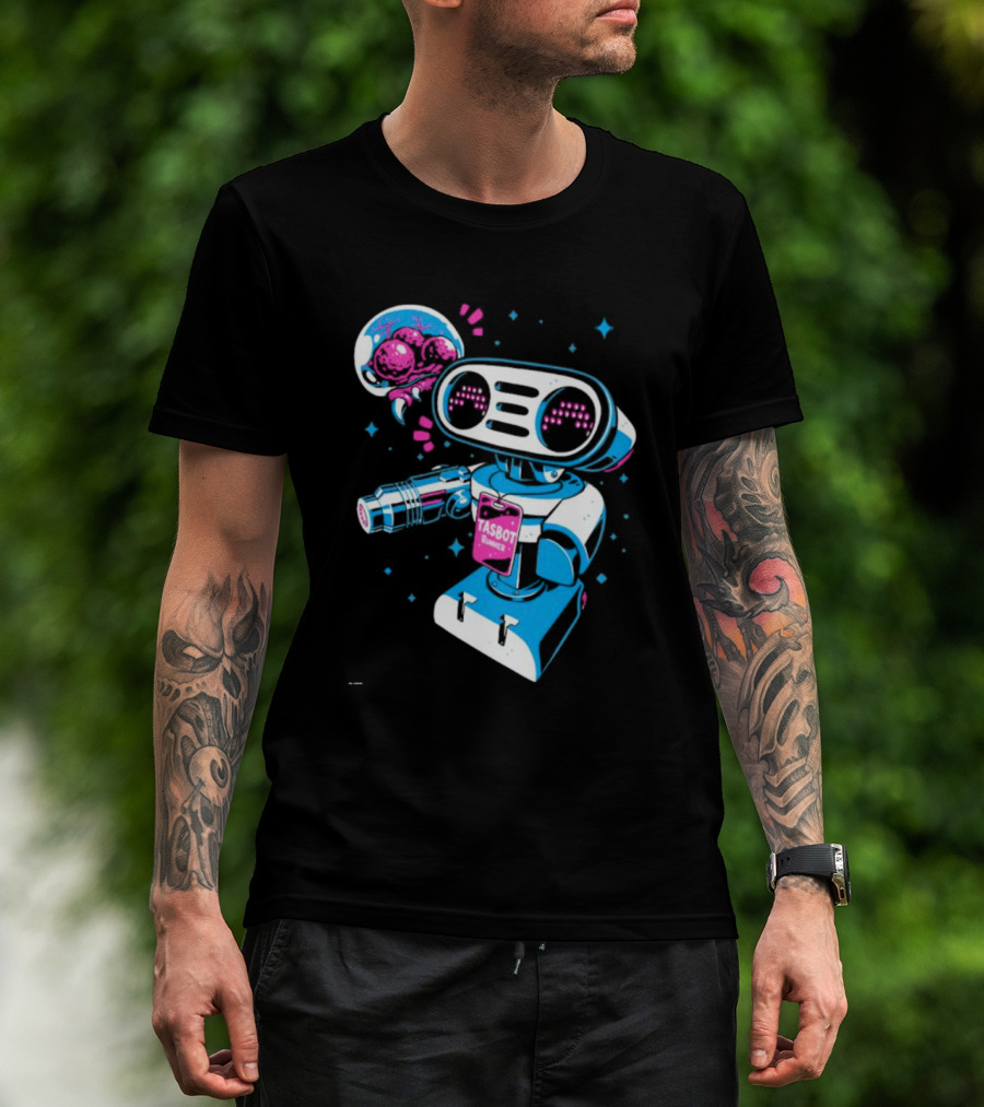 Tasbeam Tasbot Runner Robot With Alien Planet And Retro Sci-Fi Elements T-Shirt