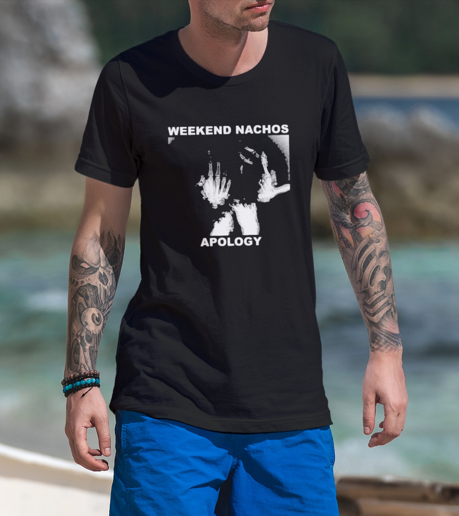 WEEKEND NACHOS APOLOGY Skeleton Hand Gesture T-Shirt