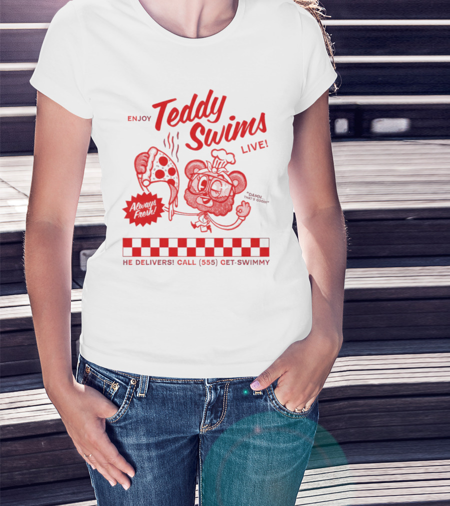 Enjoy Teddy Swims Live Always Fresh Pizza He Delivers Call 555 Get-Swimmy T-Shirt