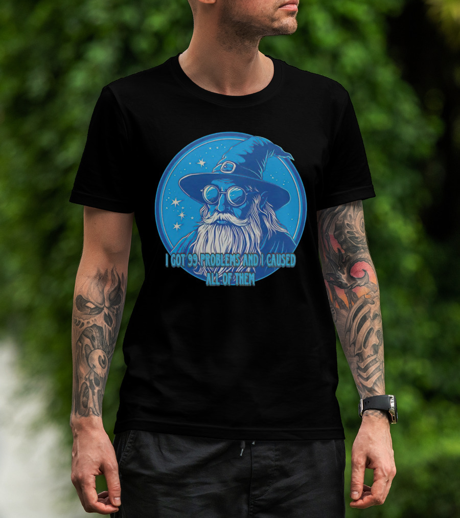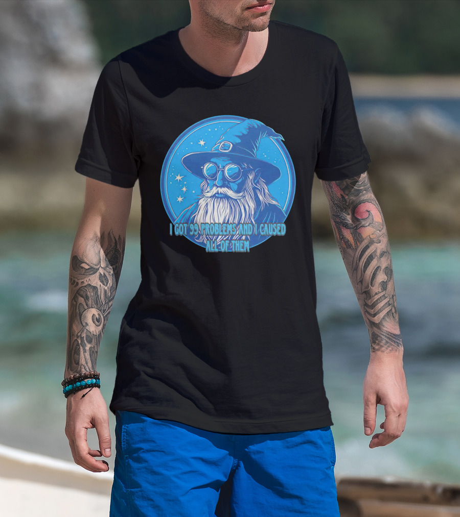 Wizard I Got 99 Problems And I Caused All Of Them Blue Starry Hat And Beard T-Shirt