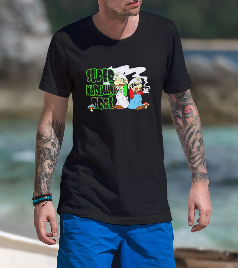Super Marijuana Bros Weed Parody With Smoking Characters And Mushrooms T-Shirt