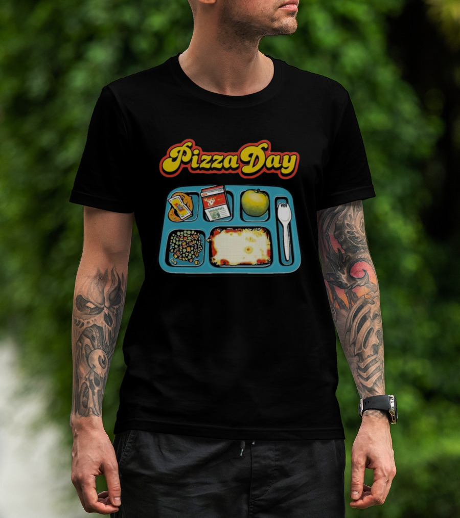 S7s Pizza Day Cafeteria Lunch Tray With Pizza, Milk, Apple, Cookies, Fork, And Vegetables T-Shirt