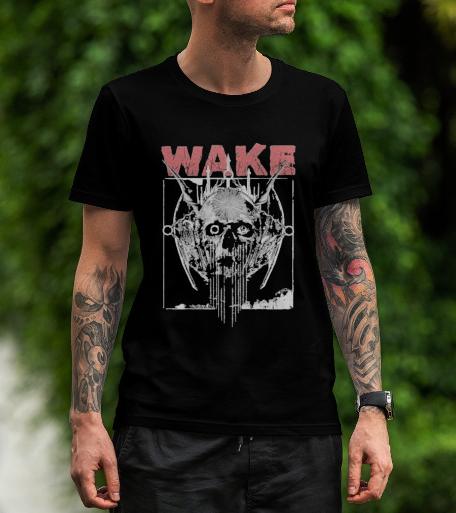 WAKE Skull With Wings And Abstract Elements T-Shirt