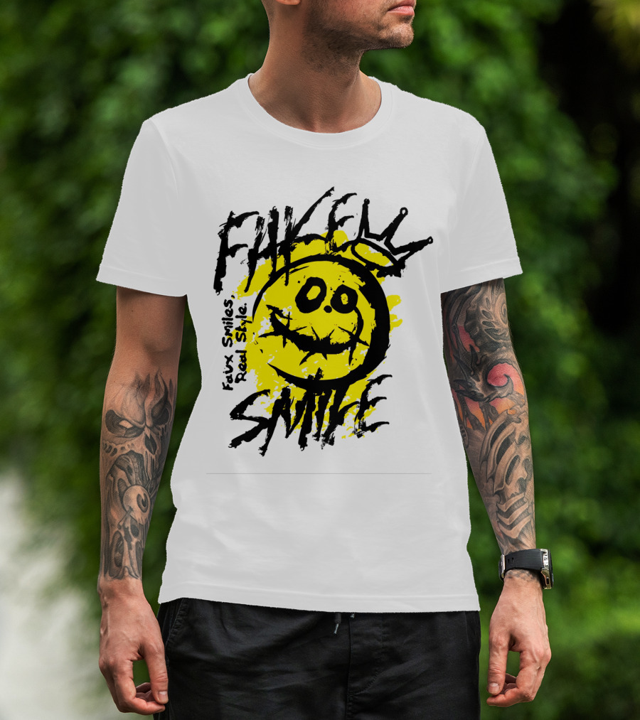 The Fake Smile Faux Smiles Real Style Smiley Crown T-shirt is designed for everyday wear and a consistent fit. Fabric is pre-shrunk ring-spun cotton with durable stitching. See the size chart below for exact measurements.