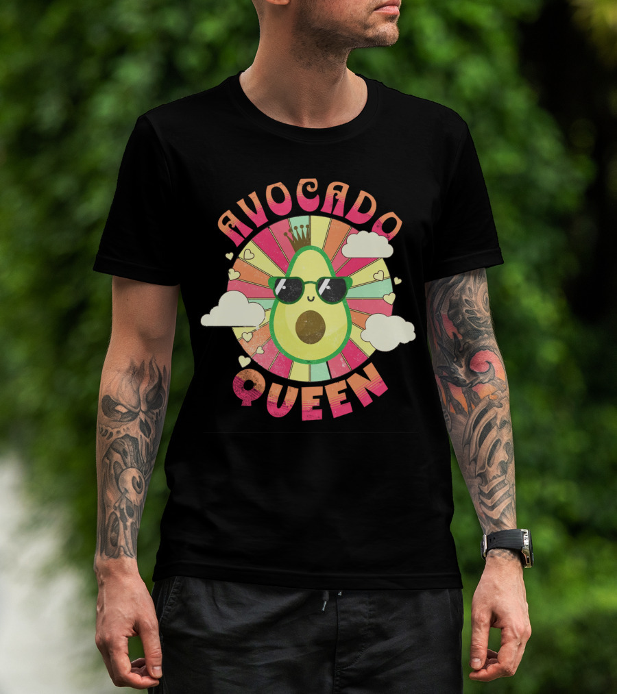 Kawaii Avocado Queen Retro Rainbow Sunburst With Clouds And Sunglasses T-Shirt
