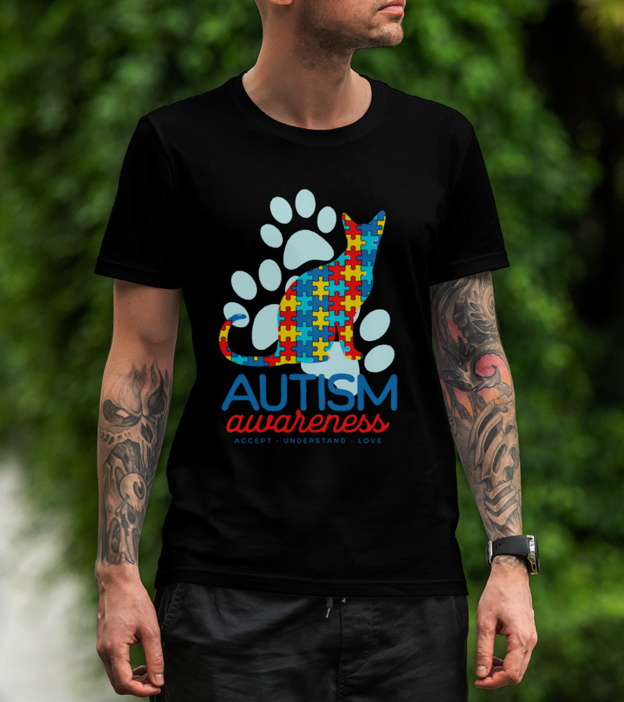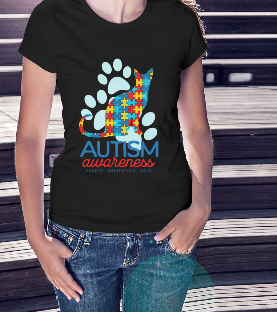 Autism Awareness Accept Understand Love Puzzle Cat Paw T-Shirt
