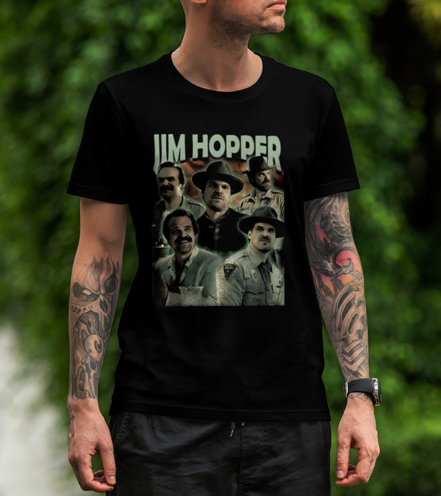 Jim Hopper Vintage Frtingglitter Nostalgic Character Montage T-Shirt