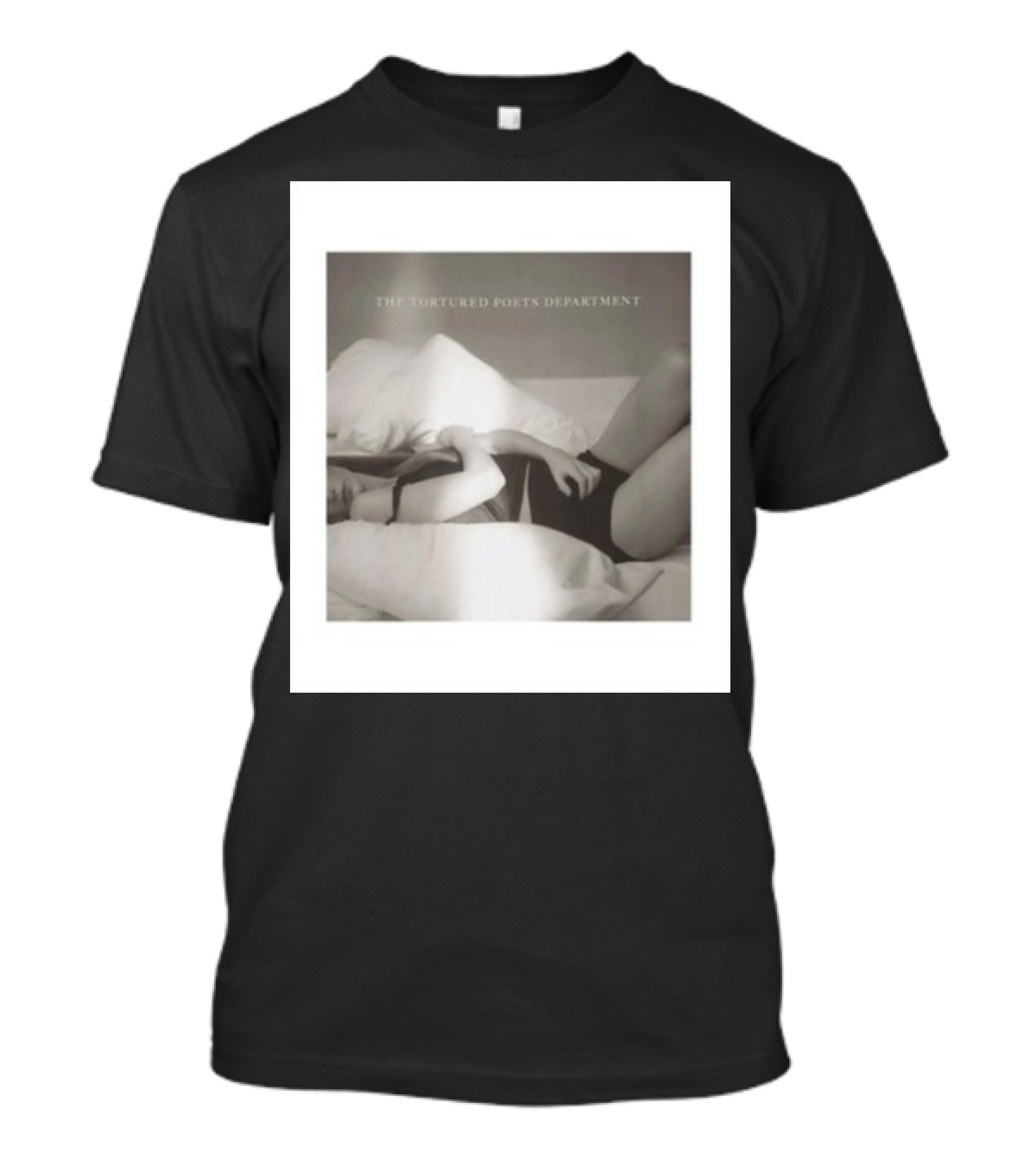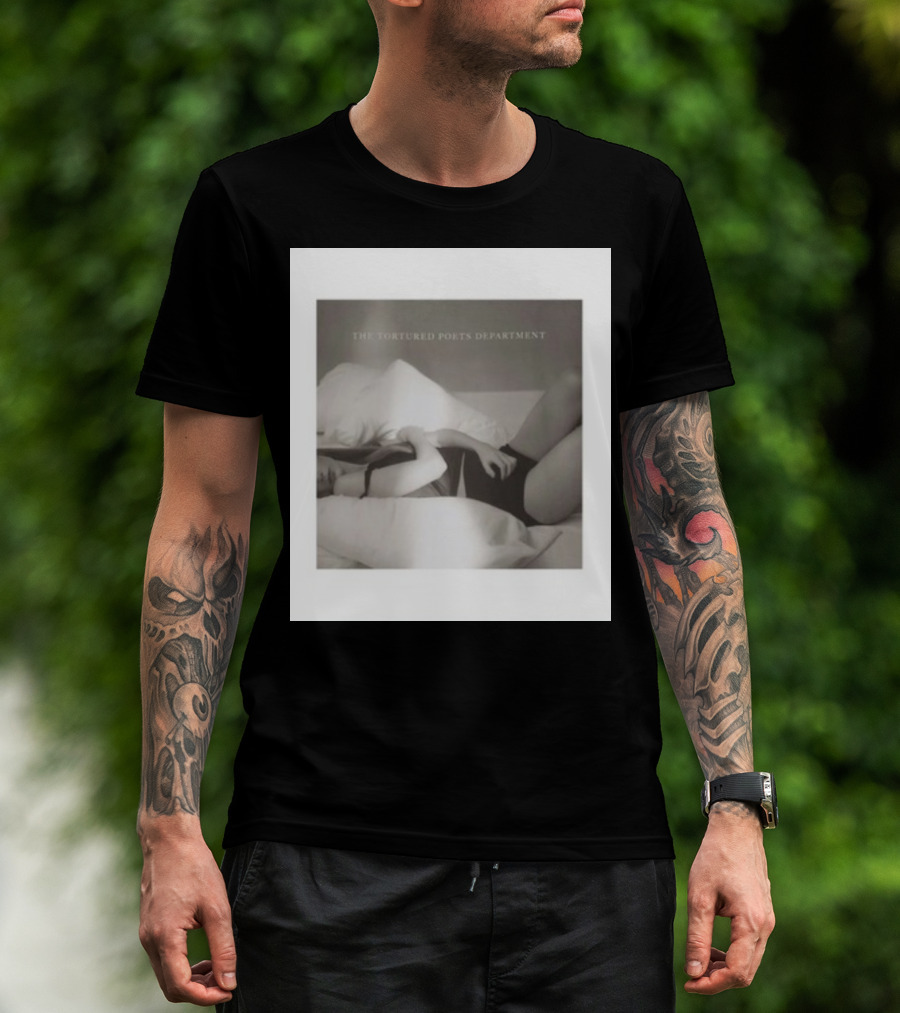 The The Tortured Poets Department Lying Down Black and White Photograph T-shirt is designed for everyday wear and a consistent fit. Fabric is pre-shrunk ring-spun cotton with durable stitching. See the size chart below for exact measurements.