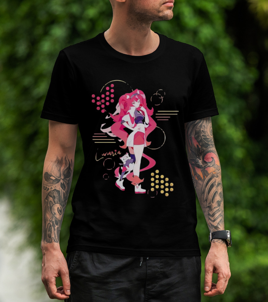 The Lunaria Streetwear Pink Hair Girl with Cat and Circles T-shirt is designed for everyday wear and a consistent fit. Fabric is pre-shrunk ring-spun cotton with durable stitching. See the size chart below for exact measurements.