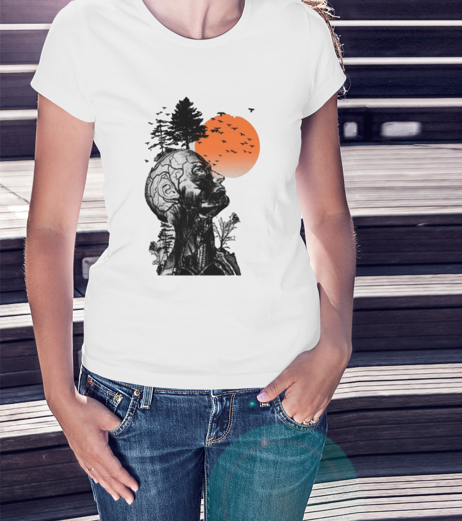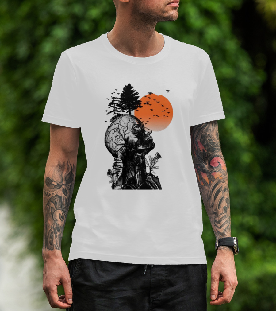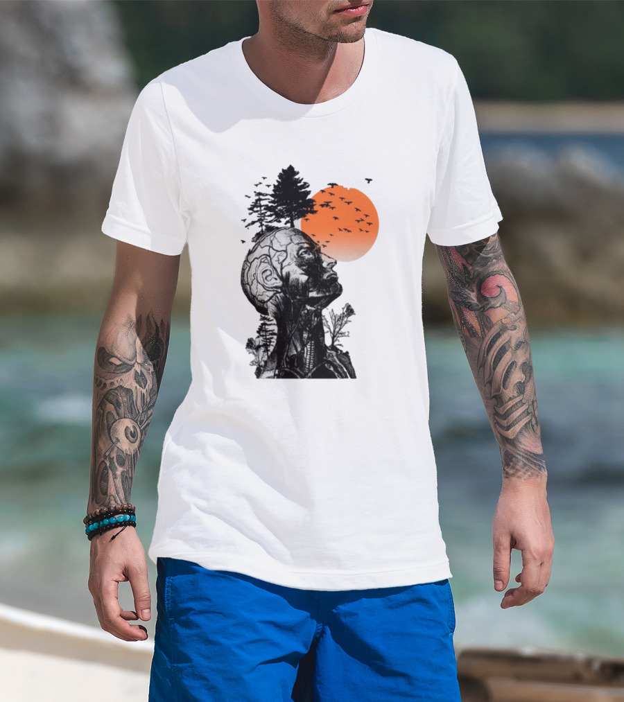The Jason Kelce Hangover Brain Anatomy with Sunset and Flying Birds T-shirt is designed for everyday wear and a consistent fit. Fabric is pre-shrunk ring-spun cotton with durable stitching. See the size chart below for exact measurements.