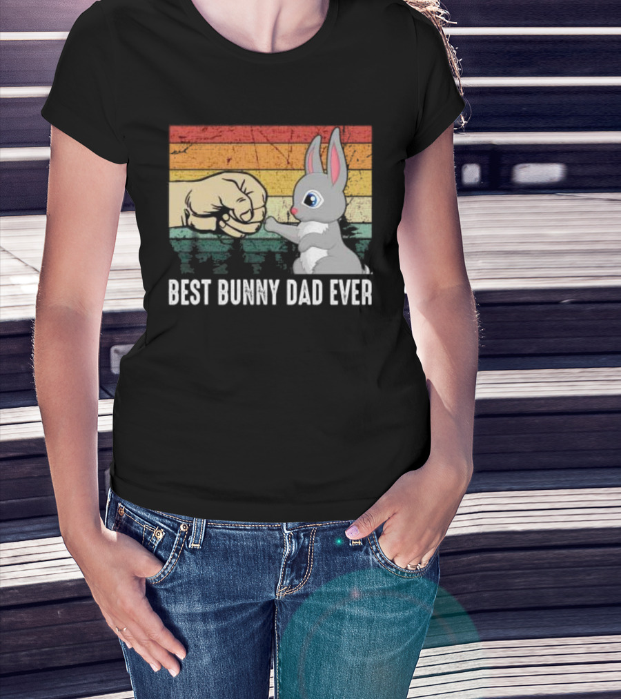 BEST BUNNY DAD EVER Vintage Fist Bump With Rabbit T-Shirt