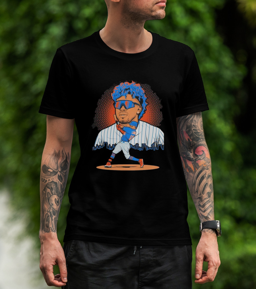 Francisco Lindor Baseball Player Skyline Batting Pose T-Shirt