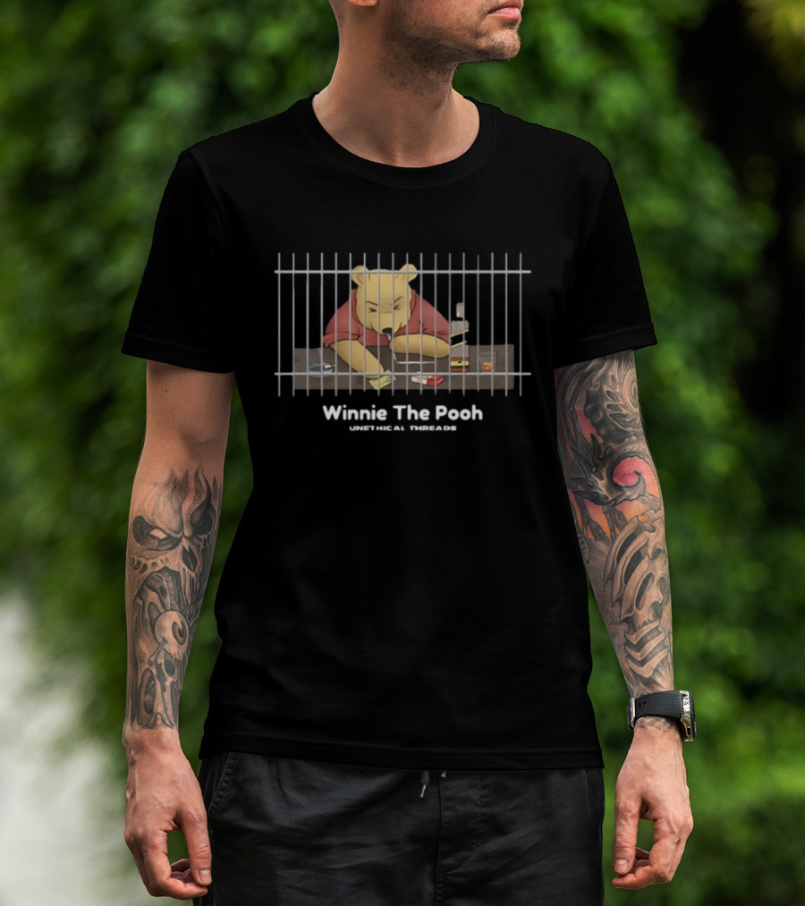 The Winnie The Pooh Unethical Threads Prison Bars Gambling Drink T-shirt is designed for everyday wear and a consistent fit. Fabric is pre-shrunk ring-spun cotton with durable stitching. See the size chart below for exact measurements.