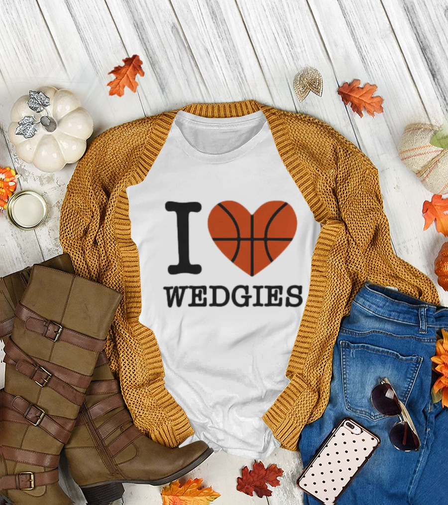 The I Love Wedgies Basketball Heart Design T-shirt is designed for everyday wear and a consistent fit. Fabric is pre-shrunk ring-spun cotton with durable stitching. See the size chart below for exact measurements.
