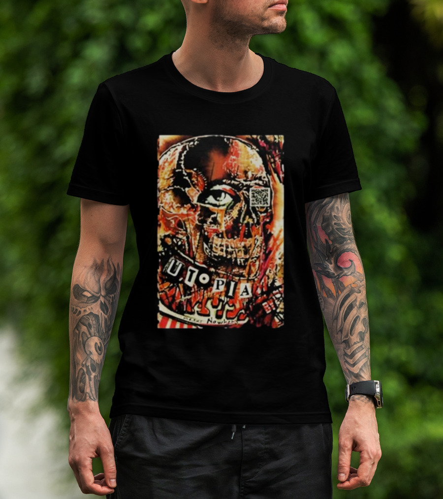Utopia Means Nowhere Glitched Skull Collage With Eye And QR Code T-Shirt