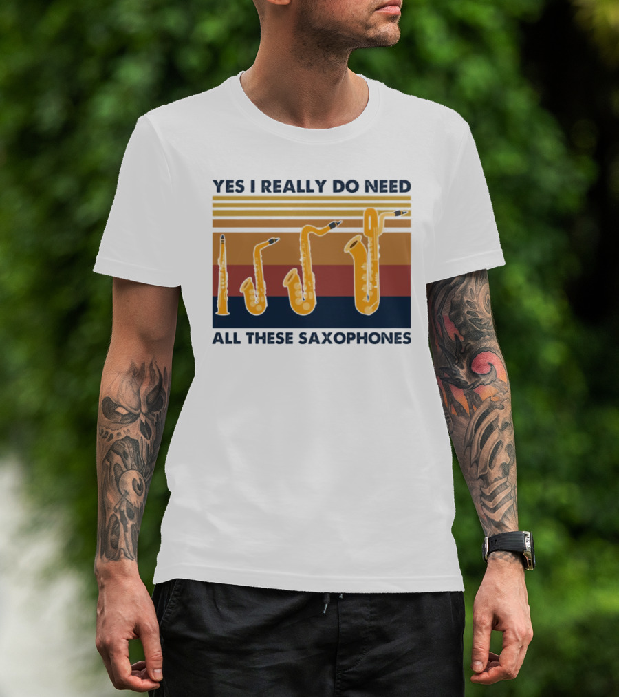 Yes I Really Do Need All These Saxophones Retro Stripes T-Shirt