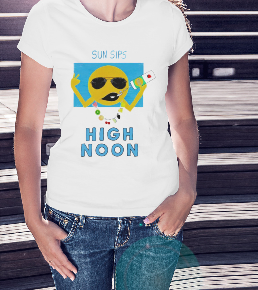Sun Sips High Noon Emoji With Sunflower Style Glasses And Drink T-Shirt