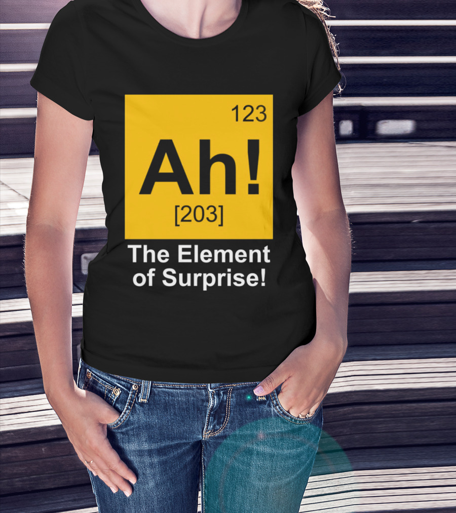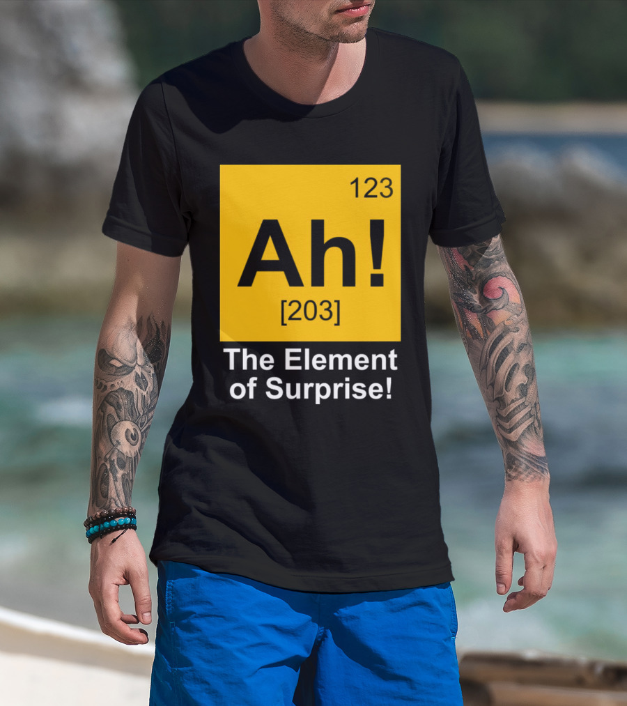 The 123 Ah 203 The Element of Surprise T-shirt is designed for everyday wear and a consistent fit. Fabric is pre-shrunk ring-spun cotton with durable stitching. See the size chart below for exact measurements.