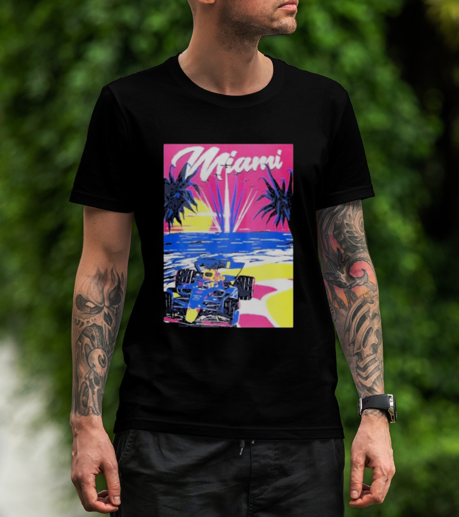 Max Verstappen Formula 1 Miami Sunset Palms Racing Scene T-Shirt