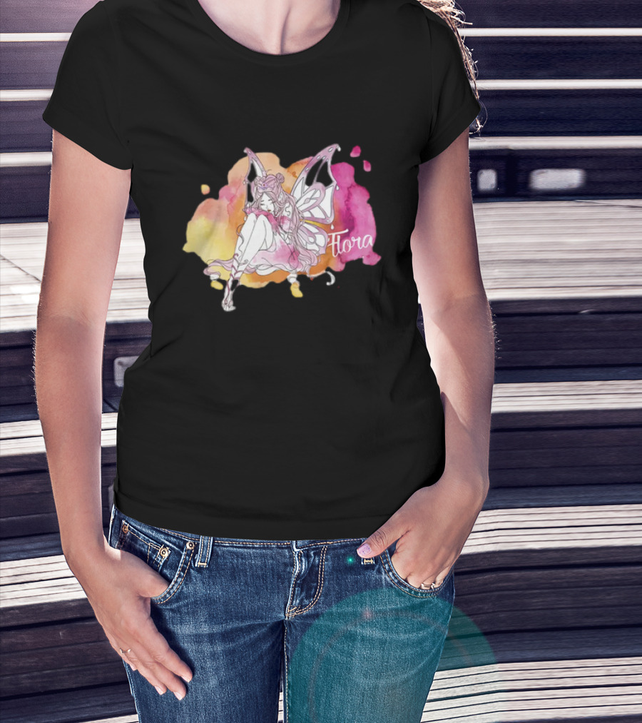 The Flora Winx Club Merch Shine Bright Watercolor Wings T-shirt is designed for everyday wear and a consistent fit. Fabric is pre-shrunk ring-spun cotton with durable stitching. See the size chart below for exact measurements.