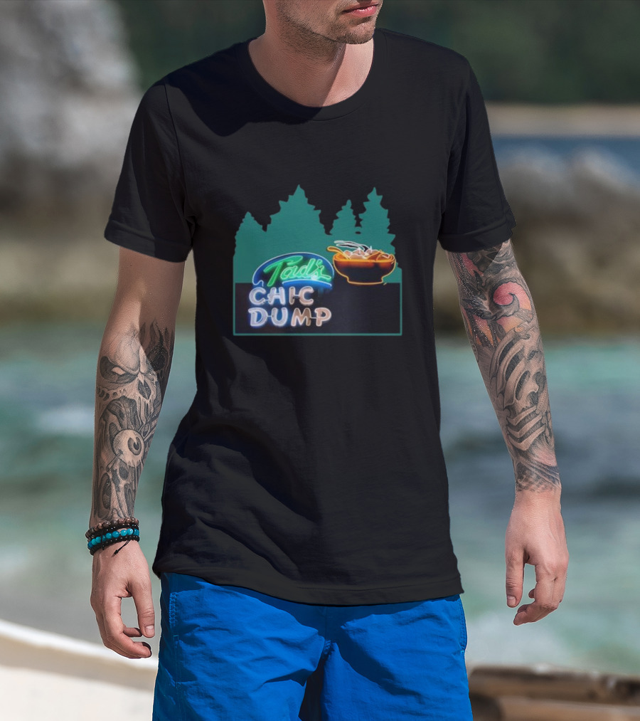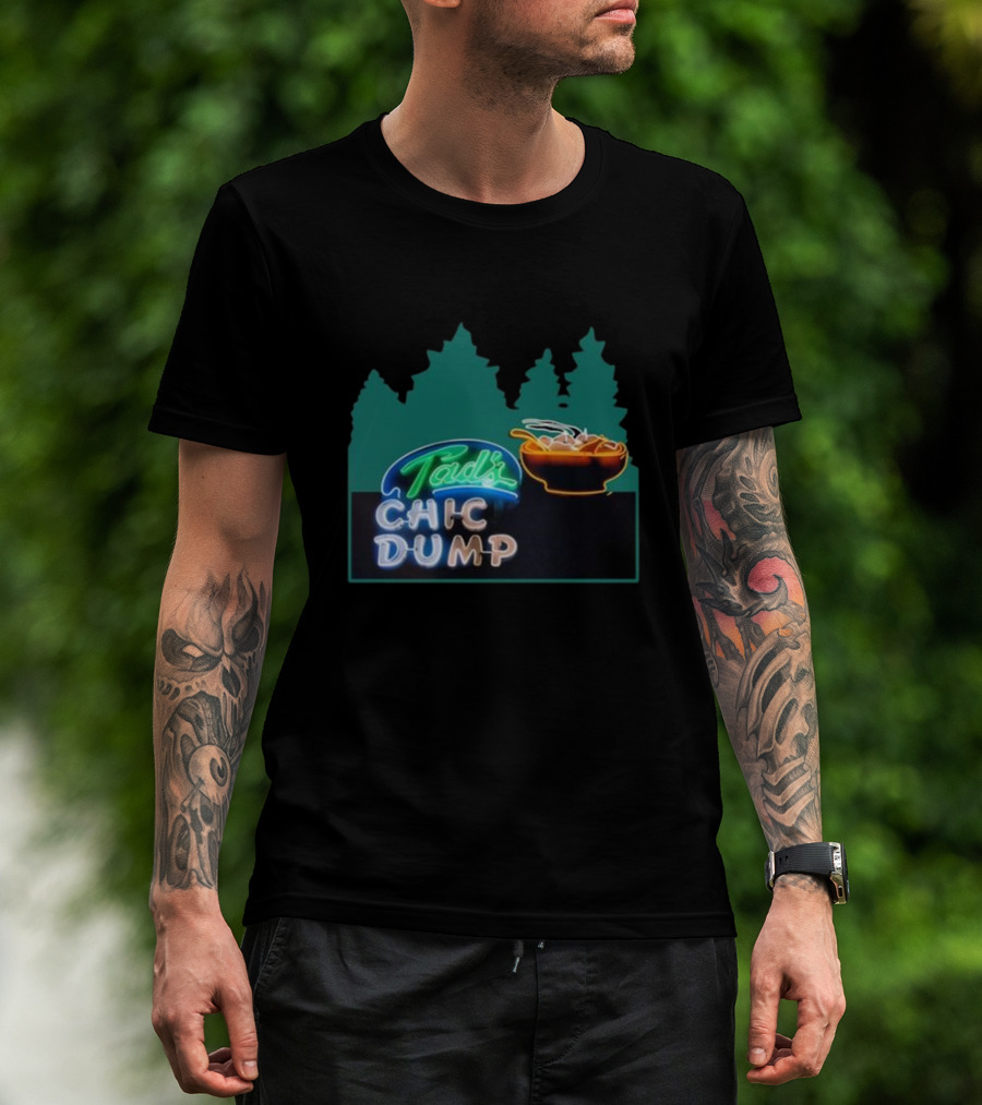 Tad's Chic Dump Neon Sign With Forest Background And Steaming Bowl T-Shirt