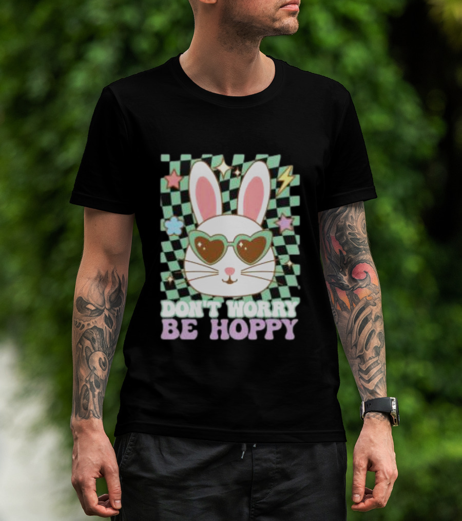 Groovy Retro Easter Bunny Dont Worry Be Hoppy T-Shirt