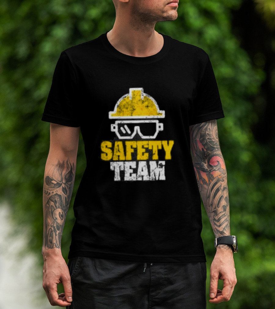 The Safety Team Occupational Safety Officer OSHA HSE Hard Hat and Safety Glasses T-shirt is designed for everyday wear and a consistent fit. Fabric is pre-shrunk ring-spun cotton with durable stitching. See the size chart below for exact measurements.