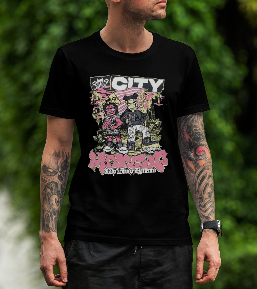 The City Morgue My Bloody America T-shirt is designed for everyday wear and a consistent fit. Fabric is pre-shrunk ring-spun cotton with durable stitching. See the size chart below for exact measurements.