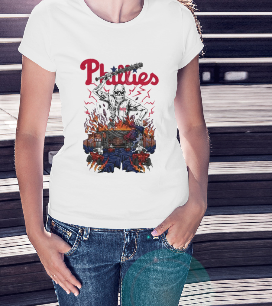Phillies Ring The Bell Skeleton Flames T-Shirt