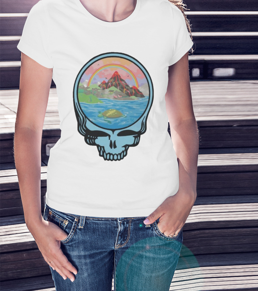 Grateful Dead Aloha Earth Day Volcano Skull Rainbow Turtle T-Shirt