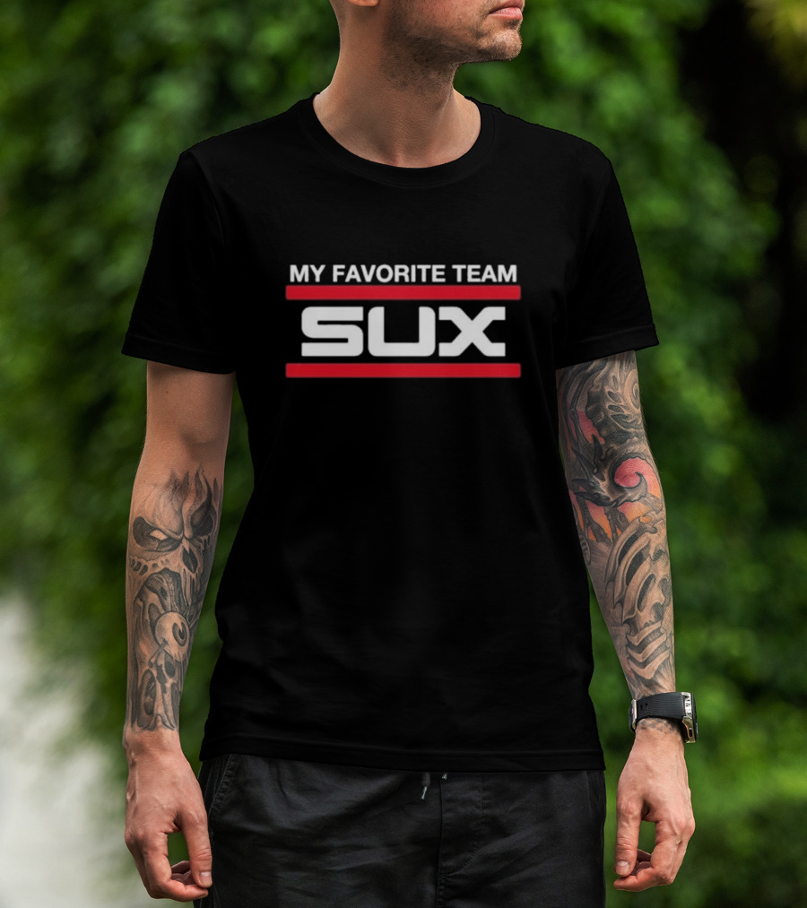 The My Favorite Team Sux T-shirt is designed for everyday wear and a consistent fit. Fabric is pre-shrunk ring-spun cotton with durable stitching. See the size chart below for exact measurements.