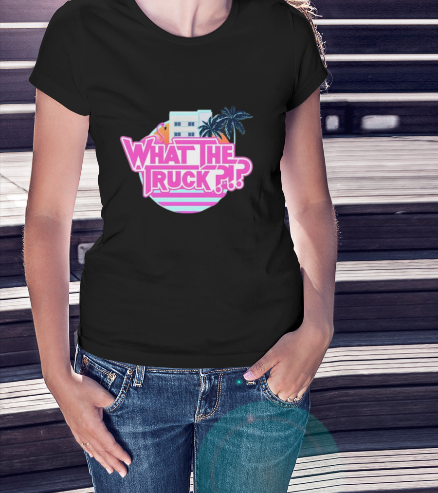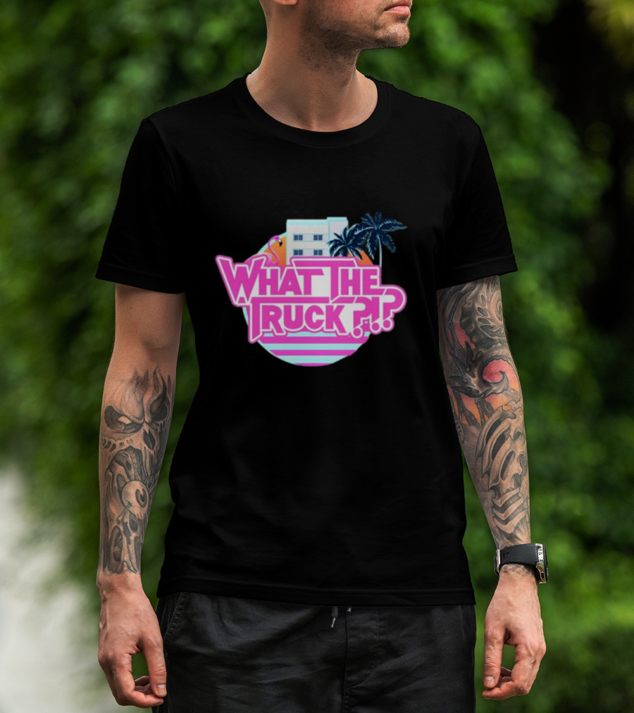 The What The Truck Miami Florida Flamingo Palm Trees and Art Deco Building T-shirt is designed for everyday wear and a consistent fit. Fabric is pre-shrunk ring-spun cotton with durable stitching. See the size chart below for exact measurements.