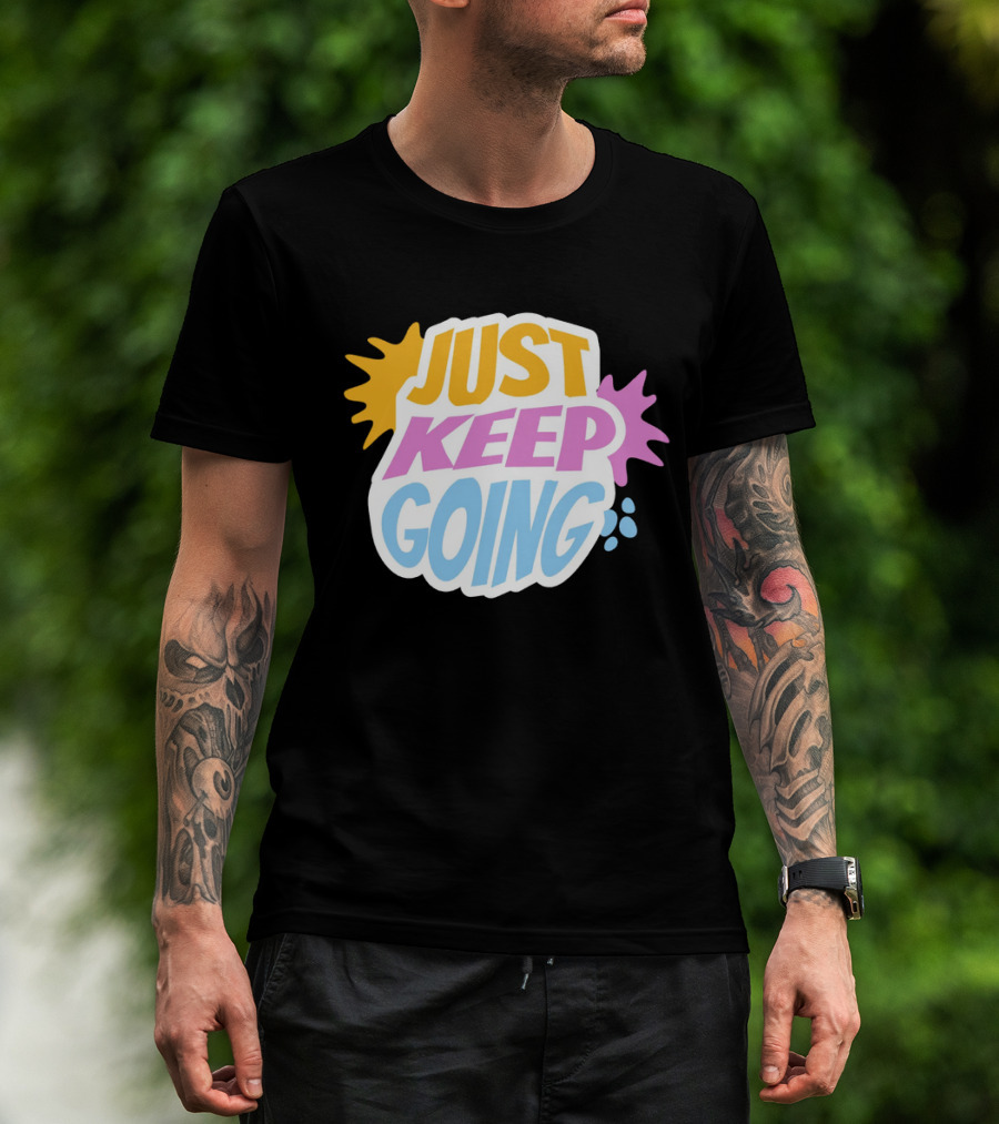 The Just Keep Going Text Effect T-shirt is designed for everyday wear and a consistent fit. Fabric is pre-shrunk ring-spun cotton with durable stitching. See the size chart below for exact measurements.