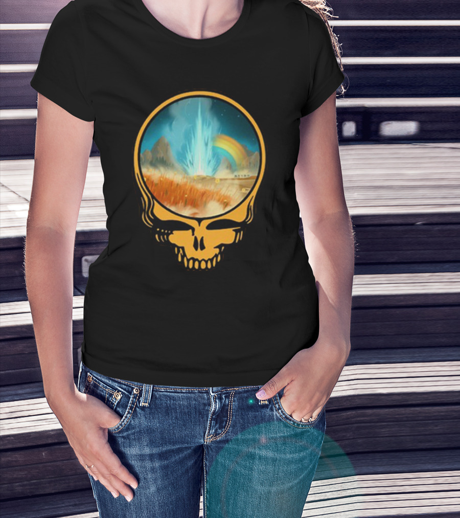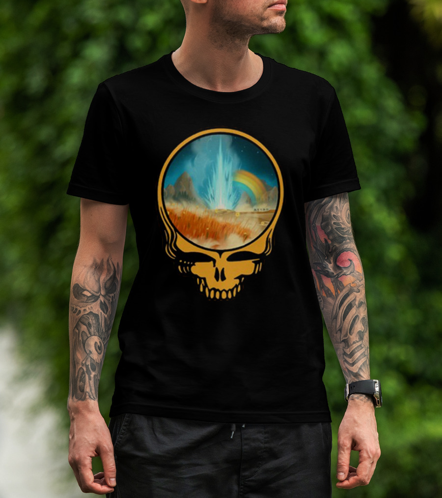 Grateful Dead Skull With Psychedelic Landscape And Rainbow T-Shirt