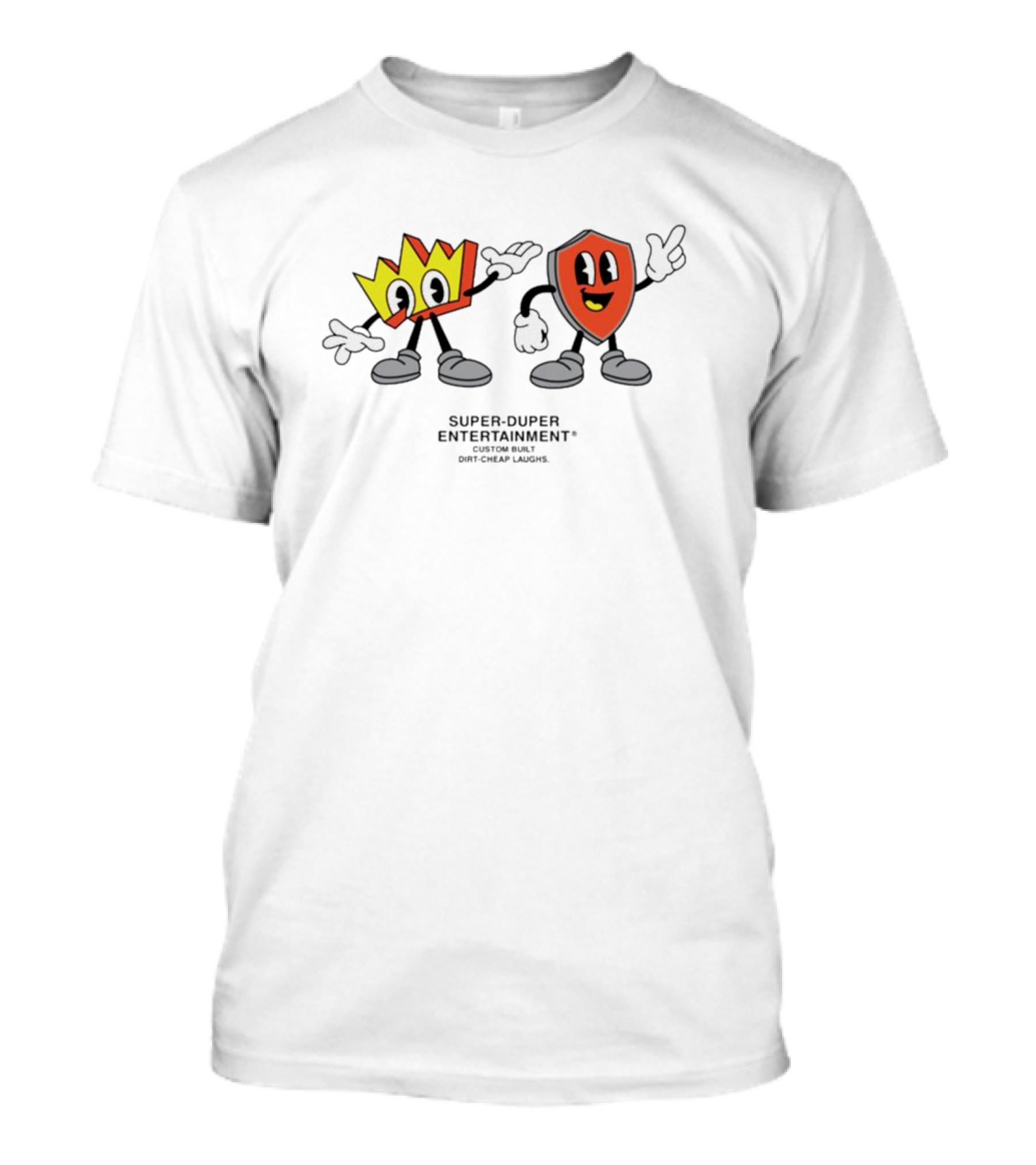 Super-Duper Entertainment Fun Cartoon Characters Crown And Shield T-Shirt