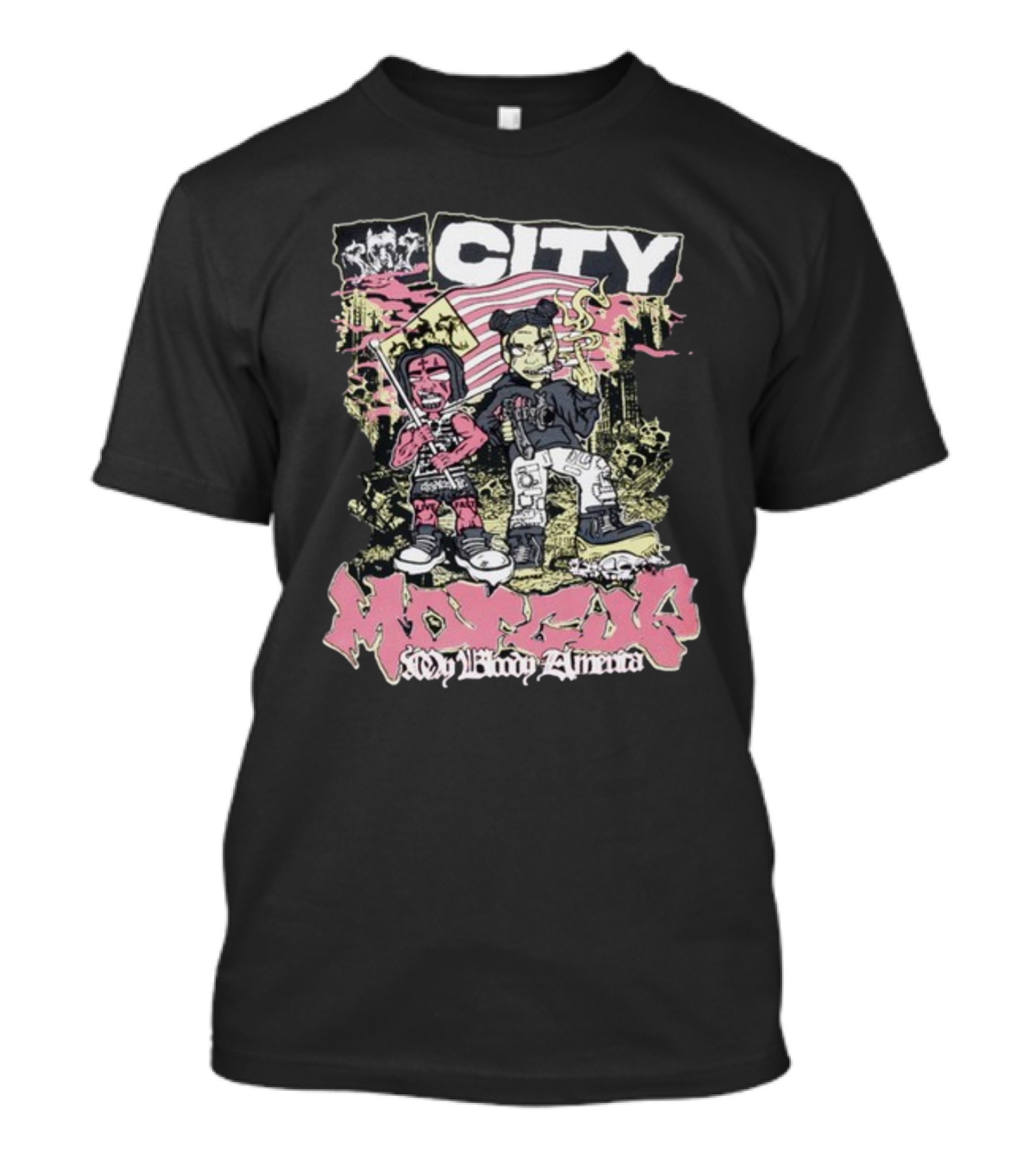 The My Bloody America City MORADO T-shirt is designed for everyday wear and a consistent fit. Fabric is pre-shrunk ring-spun cotton with durable stitching. See the size chart below for exact measurements.