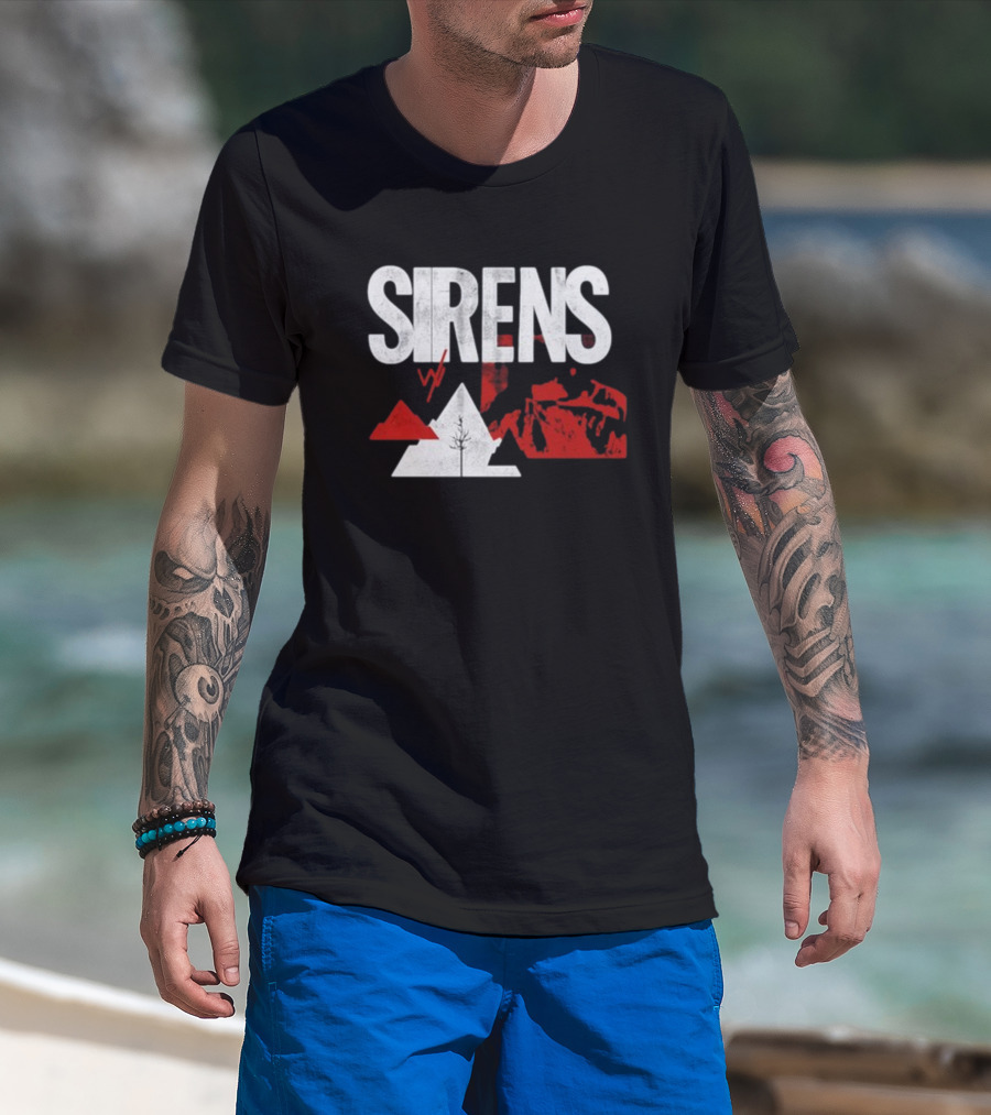 Sirens Mountain Tree Red Abstract Collage T-Shirt