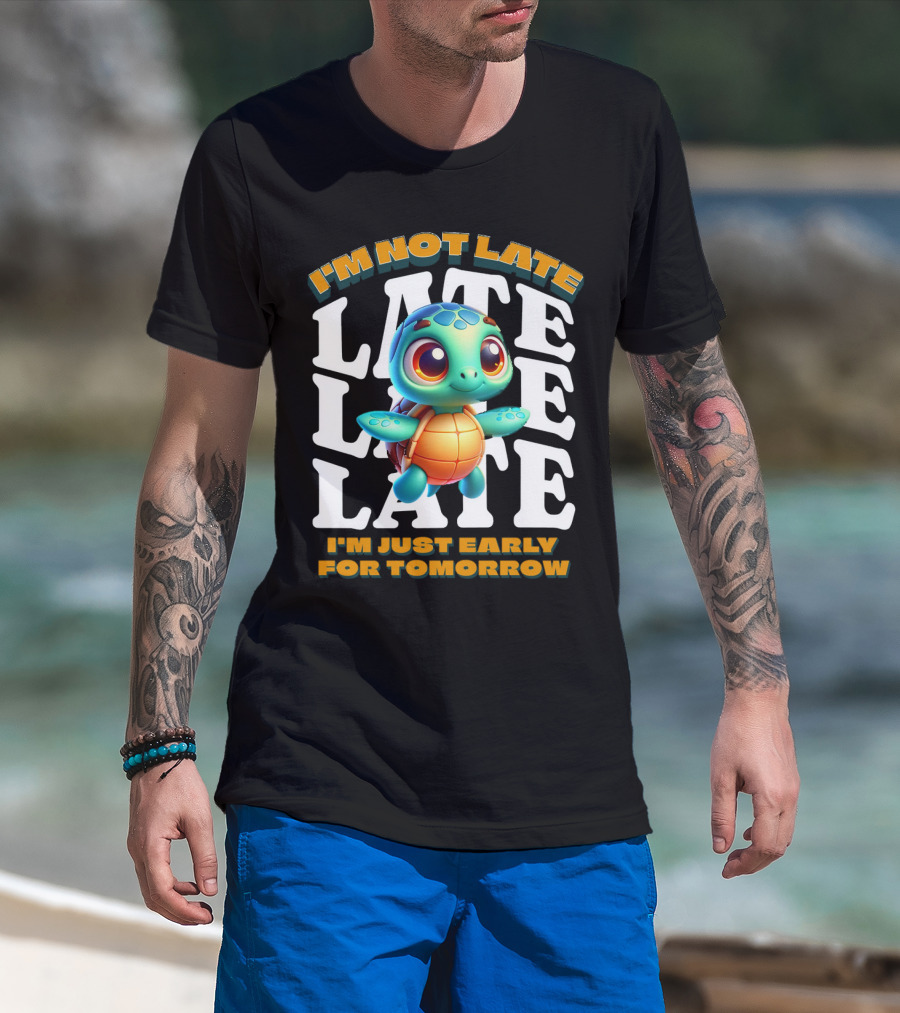 I'm Not Late Cute Funny Cartoon Turtle I'm Just Early For Tomorrow T-Shirt